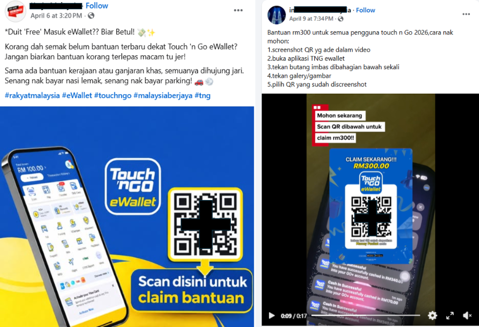 QR codes are actively being used in scams targeting government aid programs and eWallet assistance schemes. Scammers distribute fake QR codes through messages, and social media, falsely claiming they are for aid registration or claims.