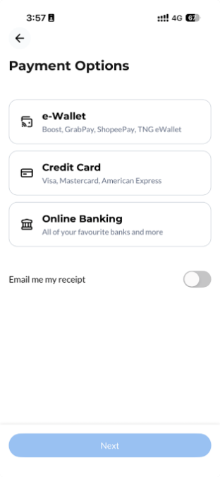 Step 4: Select your preferred payment method and click ‘Next’ to proceed with the payment. ![]() |