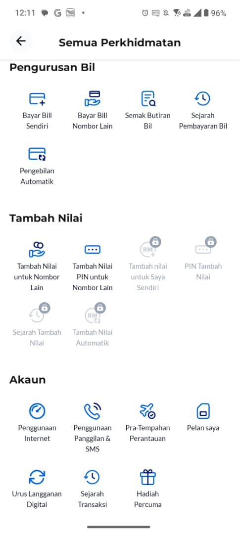Langkah 2: Di bawah kategori Pengurusan Bil, anda boleh semak: