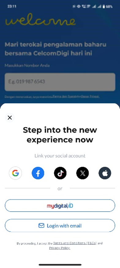 Semua pelanggan CelcomDigi yang mempunyai MyDigital ID boleh menggunakan MyDigital ID untuk log masuk ke aplikasi CelcomDigi.
