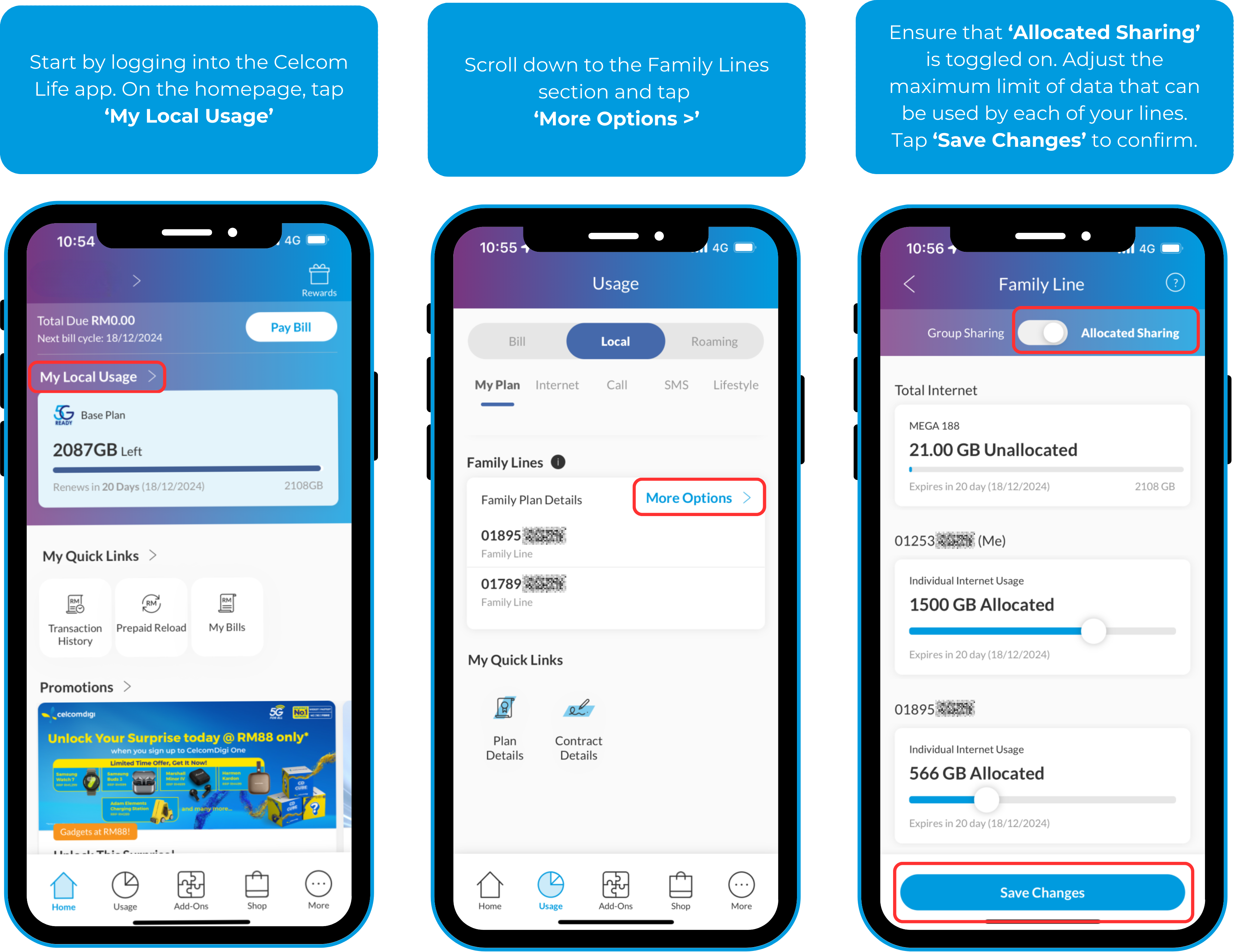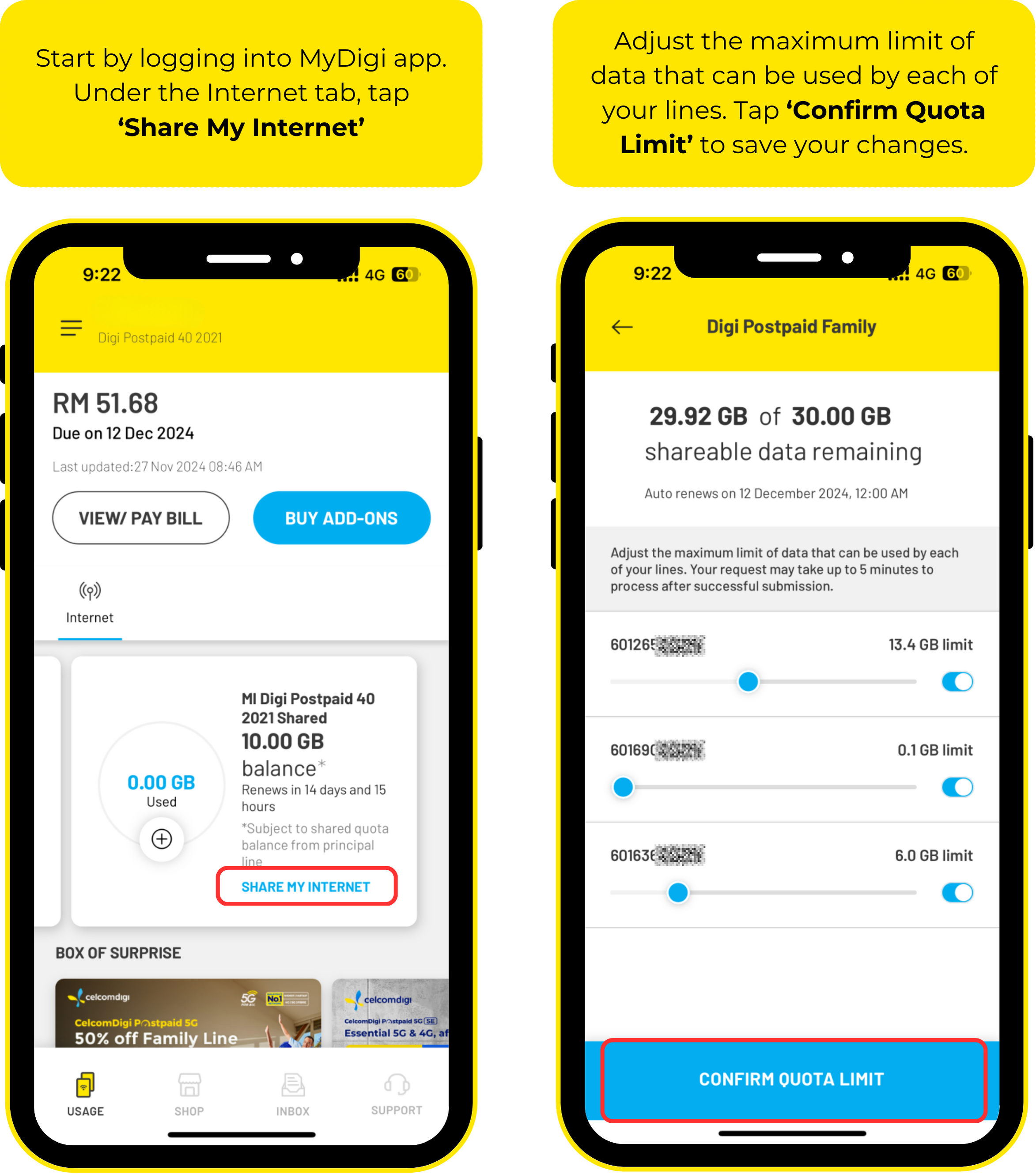 Note: Internet sharing is not applicable for unlimited plans.How to Allocate Internet Quota to Supplementary Lines via App